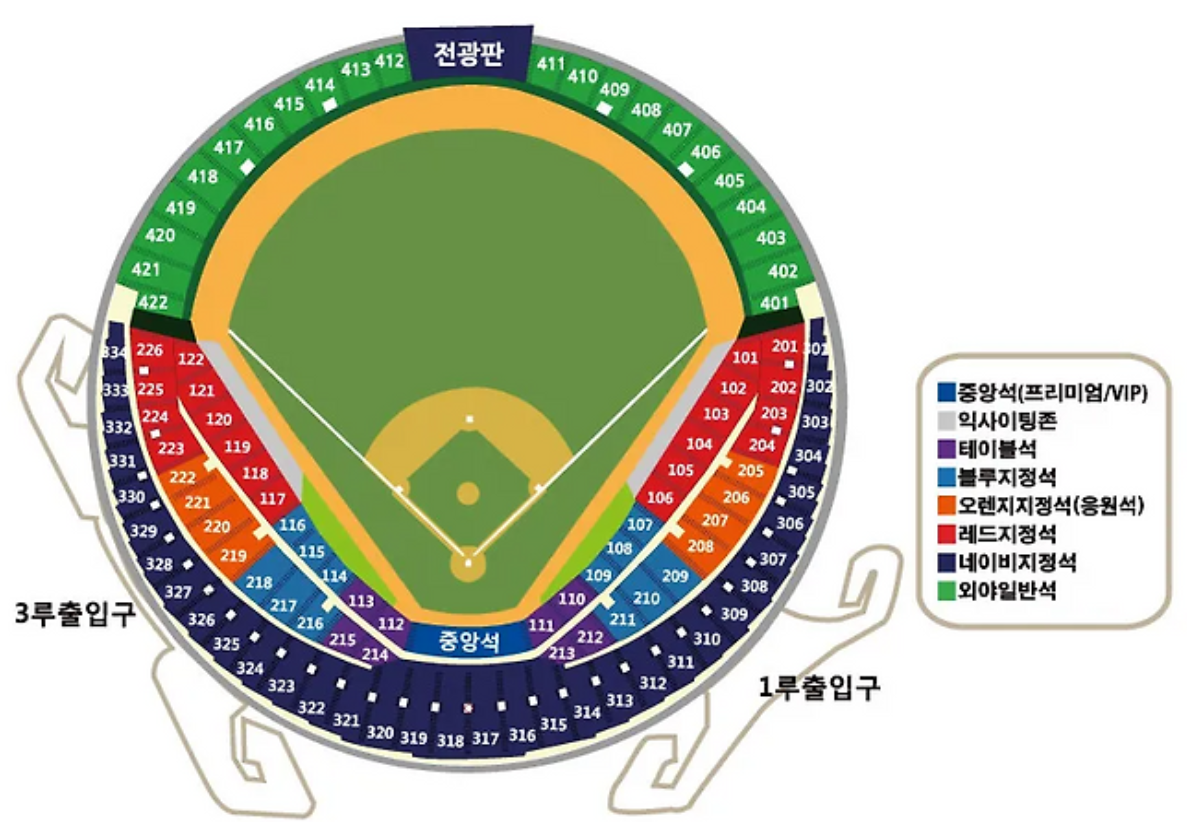 좌석별 시야, 응원 열기, 출입 편의성이 다르므로 자신에게 맞는 위치를 사전에 확인하는 것이 좋습니다.