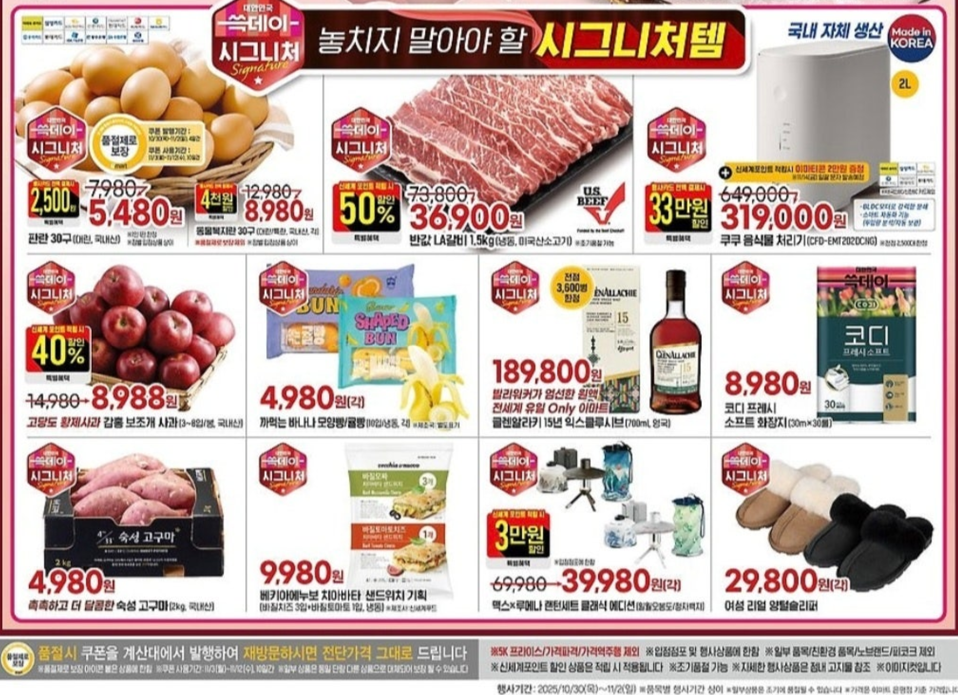 할인율이 극단적으로 높은 품목은 기간이 짧거나 수량이 제한되어 있는 경우가 많습니다. 예컨대 “10/30~10/31 이틀 한정”, “1인 ○팩 한정” 등의 안내가 있습니다.